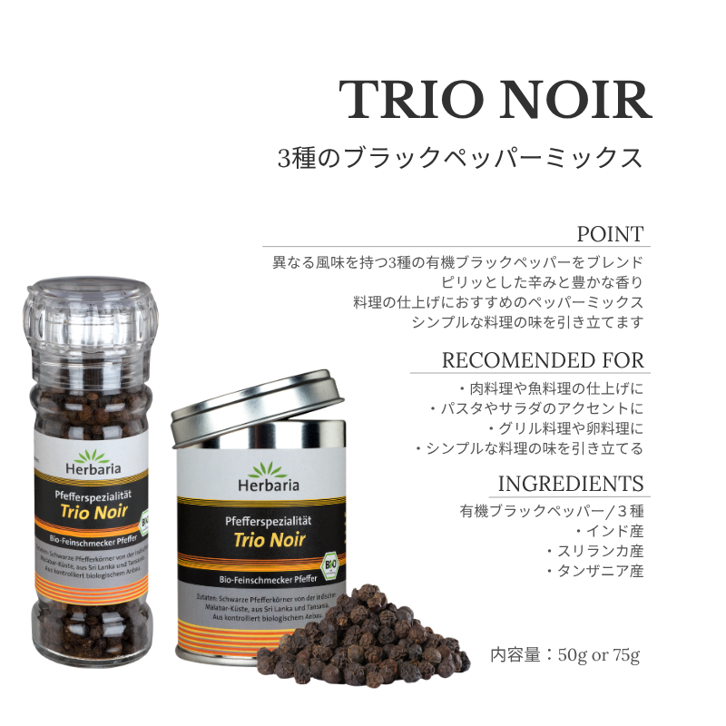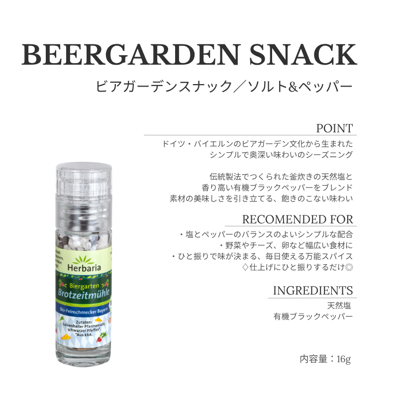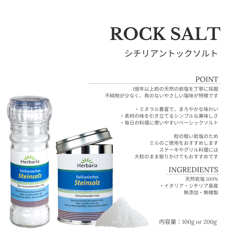 オーガニックのロックソルトとブラックペッパーを揃えたスパイスシリーズ。ミル付きで挽きたての香りと味わいを楽しめます。毎日の料理を引き立てる上質な調味料。